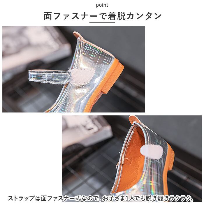 ・ストラップは面ファスナー式なので、お子さま1人でも脱ぎ履きラクラク。
