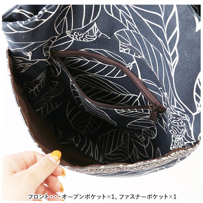 ・フロント・・・オープンポケット×1、ファスナーポケット×1
