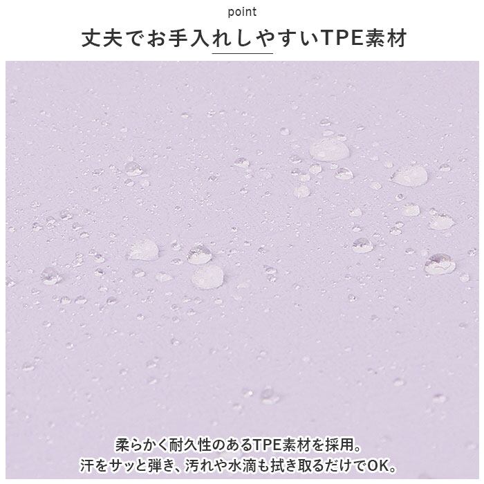 ・柔らかく耐久性のあるTPE素材を採用。汗をサッと弾き、汚れや水滴も拭き取るだけでOK。