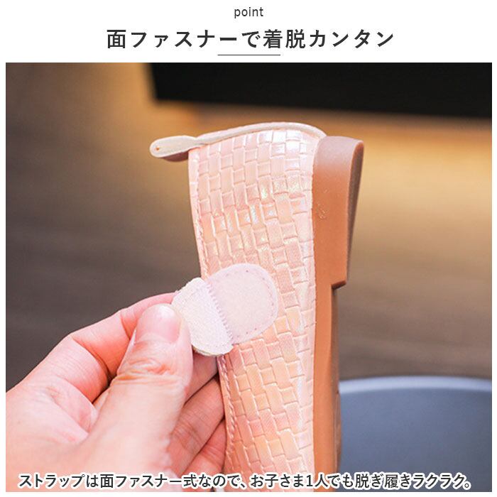 ・ストラップは面ファスナー式なので、お子さま1人でも脱ぎ履きラクラク。