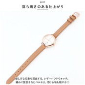 ・優しげな印象を演出する、レザー調のバンドウォッチ。細めに設計されたベルトは、付け心地も軽やか◎