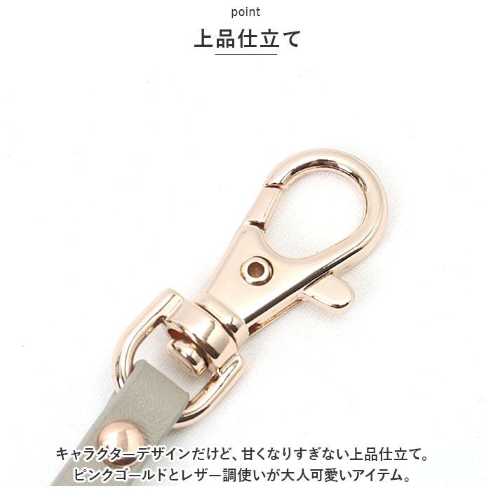 ・キャラクターデザインだけど、甘くなりすぎない上品仕立て。ピンクゴールドとレザー調使いが大人可愛いアイテム。