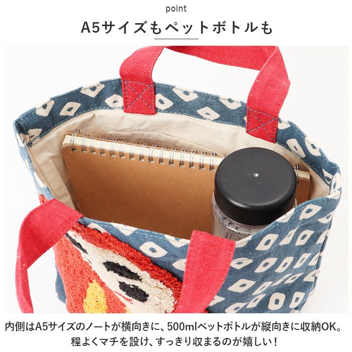 ・内側はA5サイズのノートが横向きに、500mlペットボトルが縦向きに収納OK。程よくマチを設け、すっきり収まるのが嬉しい!