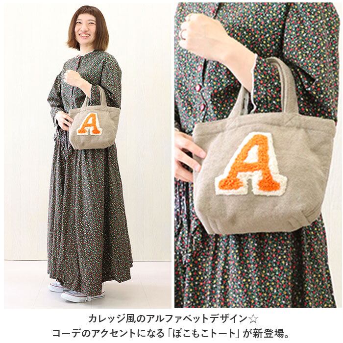・カレッジ風のアルファベットデザイン☆コーデのアクセントになる「ぽこもこトート」が新登場。