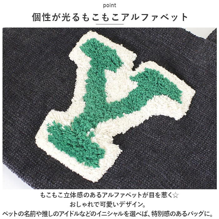 ・もこもこ立体感のあるアルファベットが目を惹く☆おしゃれで可愛いデザイン。ペットの名前や推しのアイドルなどのイニシャルを選べば、特別感のあるバッグに。