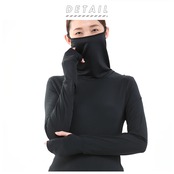 タートルネック レディース 暖 通販 秋冬 カットソー インナー ブラック 大きなサイズ m l 2l 3l サイズ 防寒 マスク シンプル フェイスカバー付き 長袖 カットソー ハイネック 暖かい シンプル 黒 トップス ブランド ポカリ