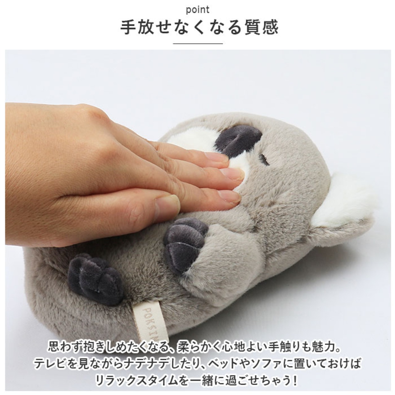 ・思わず抱きしめたくなる、柔らかく心地よい手触りも魅力。テレビを見ながらナデナデしたり、ベッドやソファに置いておけばリラックスタイムを一緒に過ごせちゃう!