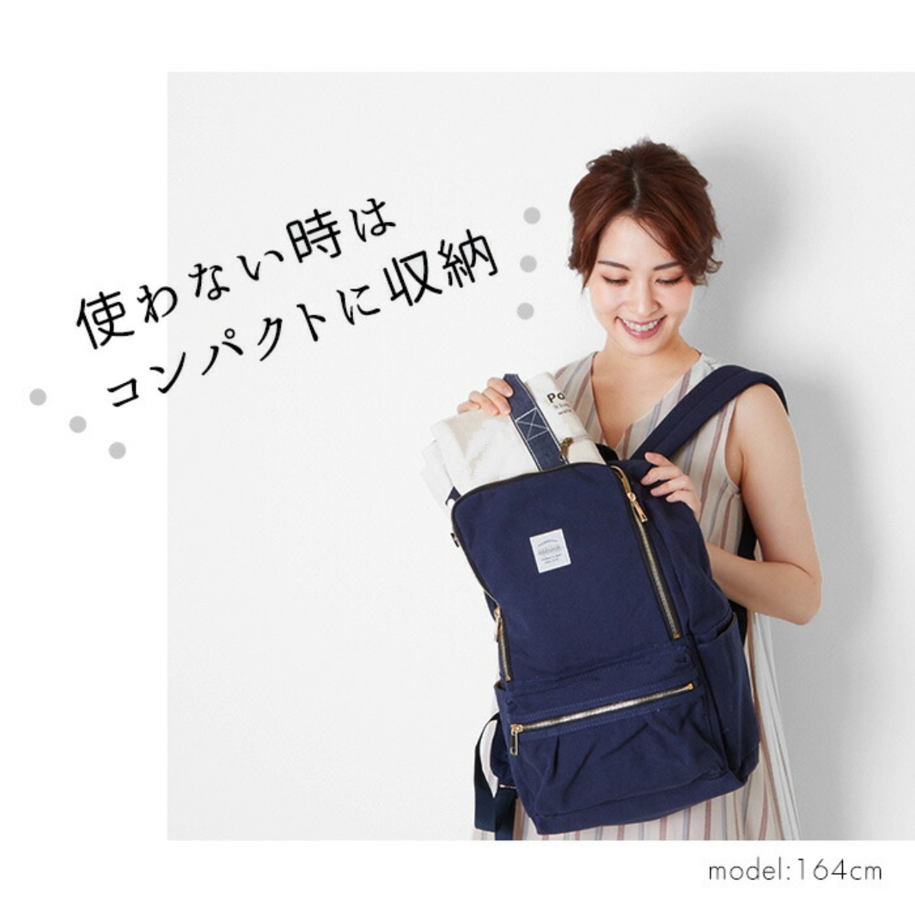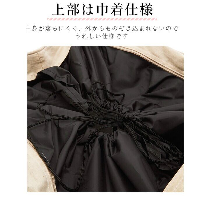[ボタン]プラスチック(PE) [アルミ]PEアルミ蒸着・ウレタン [テープ]ポリエステル [本体:生成り部分]8oz帆布綿100% [本体:ネイビー部分]ポリエステル100% [巾着部分]ポリエステル [ポケットメッシュ生地]ポリエステル [ファスナー]樹脂・亜鉛合金