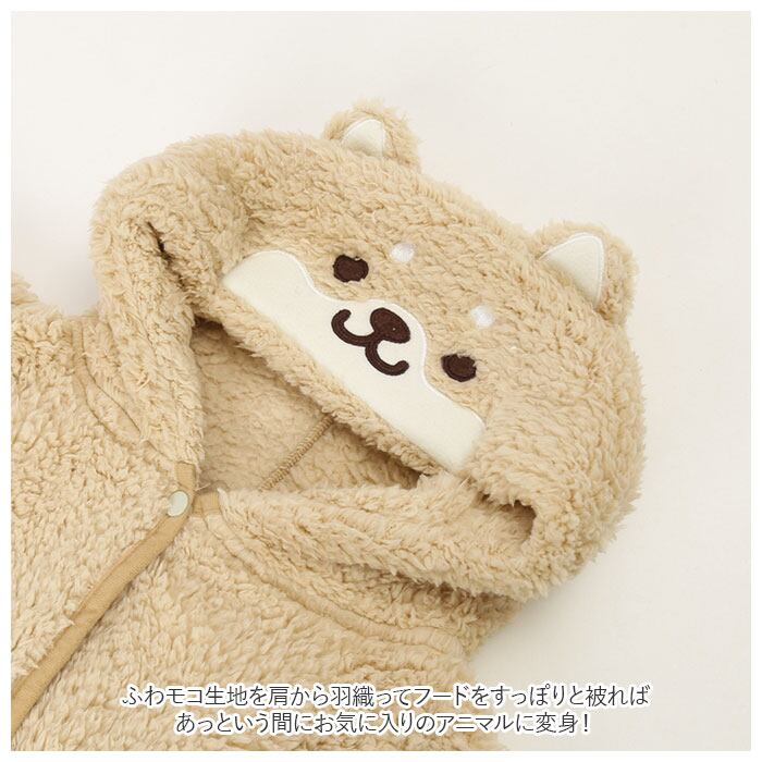 ・ふわモコ生地を肩から羽織ってフードをすっぽりと被れば、あっという間にお気に入りのアニマルに変身!