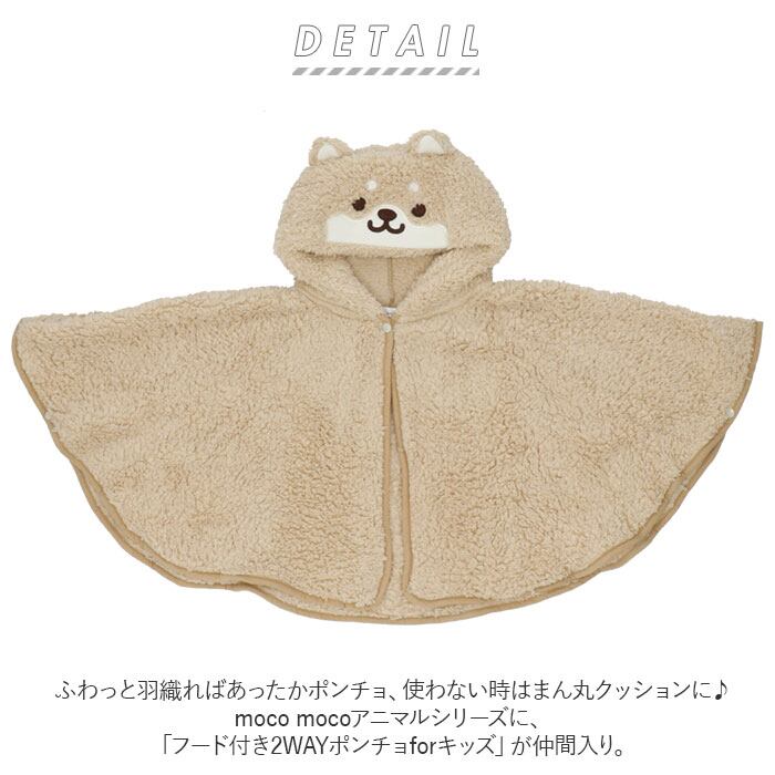 ・ふわっと羽織ればあったかポンチョ、使わない時はまん丸クッションに♪moco mocoアニマルシリーズに、「フード付き2WAYポンチョforキッズ」が仲間入り。