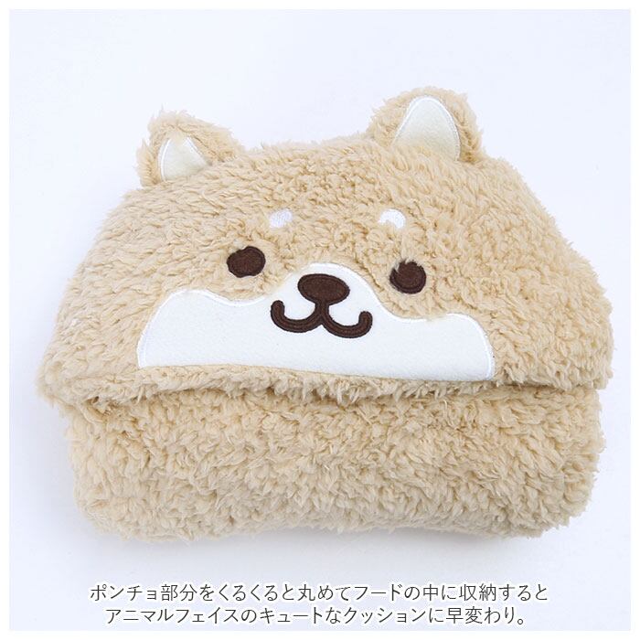 ・ポンチョ部分をくるくると丸めてフードの中に収納すると、アニマルフェイスのキュートなクッションに早変わり。