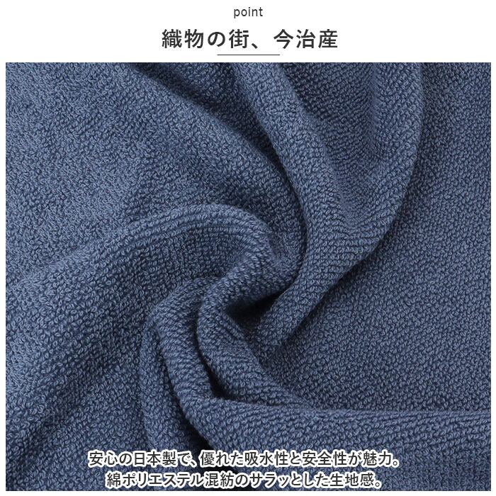 ・安心の日本製で、優れた吸水性と安全性が魅力。綿ポリエステル混紡のサラッとした生地感。