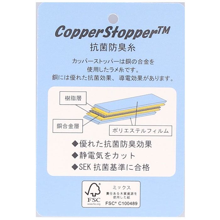 ・抗菌防臭糸「Copper Stopper TM」を採用!道の合金を使用したラメ糸で、高い抗菌効果と導電効果が特徴。いや~な静電気をカット!