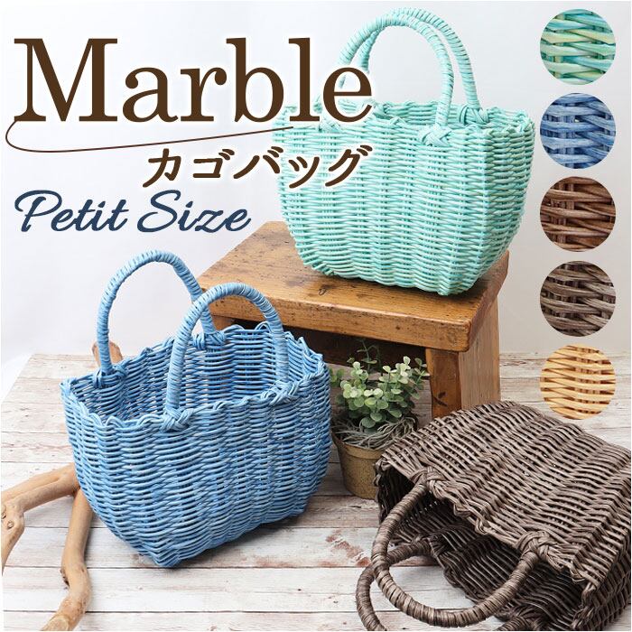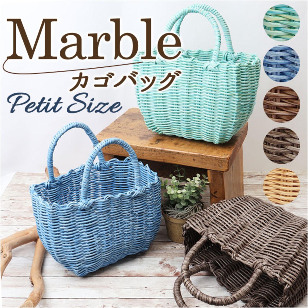 ・コロンとした丸みのあるデザインとマーブルカラーがとってもかわいい!プチサイズのカゴバッグが登場。