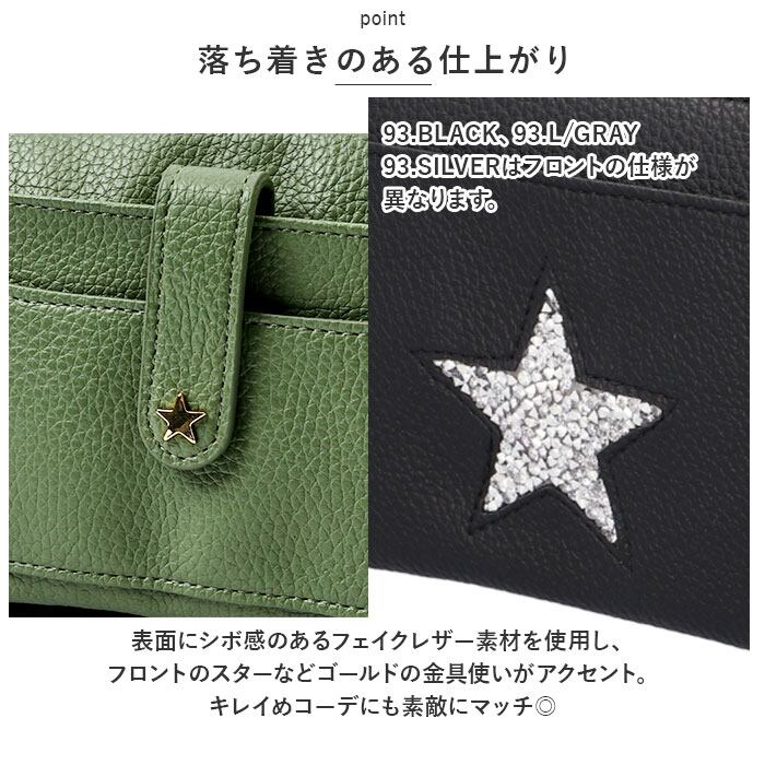 ・表面にシボ感のあるフェイクレザー素材を使用し、フロントのスターなどゴールドの金具使いがアクセント。キレイめコーデにも素敵にマッチ◎