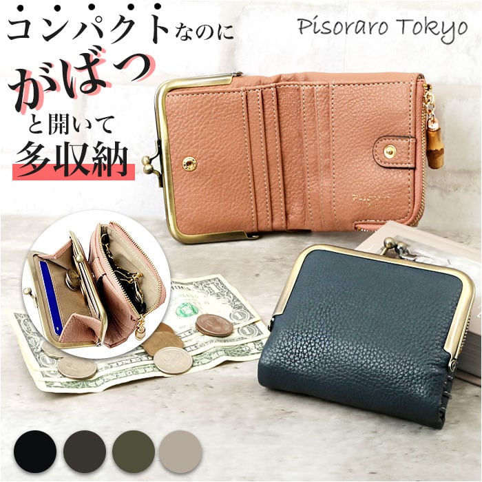 小銭入れ レディース 通販 ピソラロ pisoraro ピソラロ財布 二つ折り財布 がま口 コインケース 折りたたみ財布 折り畳み財布 ミニ財布 折り財布 ICカード ミニウォレット 財布 さいふ サイフ がま口財布 おしゃれ 小さめ 合成皮革 フェイクレザー
