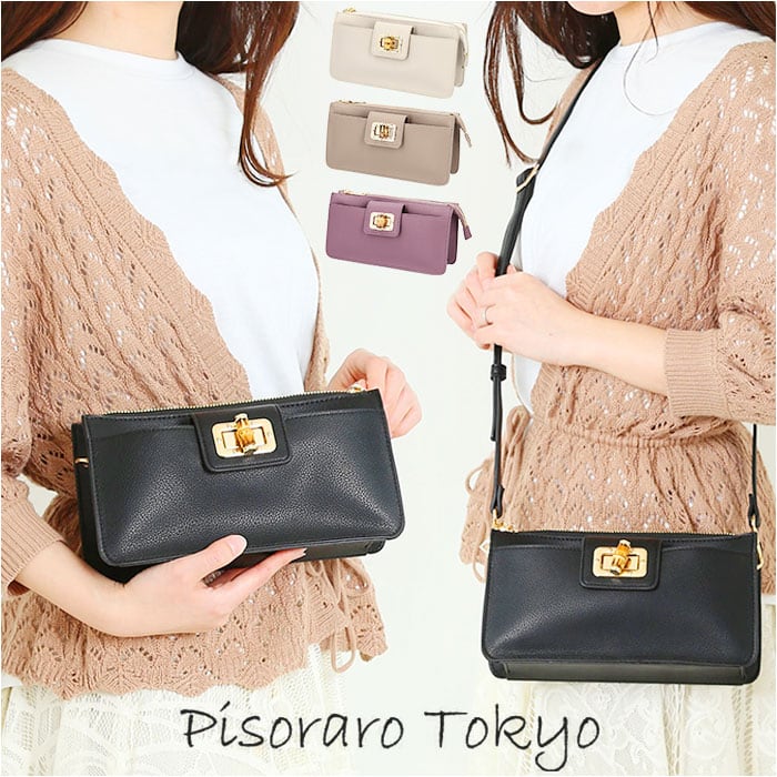 お財布ポシェット おしゃれ 通販 お財布ショルダー おサイフショルダー ショルダーバッグ ショルダーバック レディース 斜めがけ 小さめ 通勤 通学 旅行 ママ シンプル 無地 かわいい 大人可愛い Pisoraro ピソラロ PR204 レディースバッグ