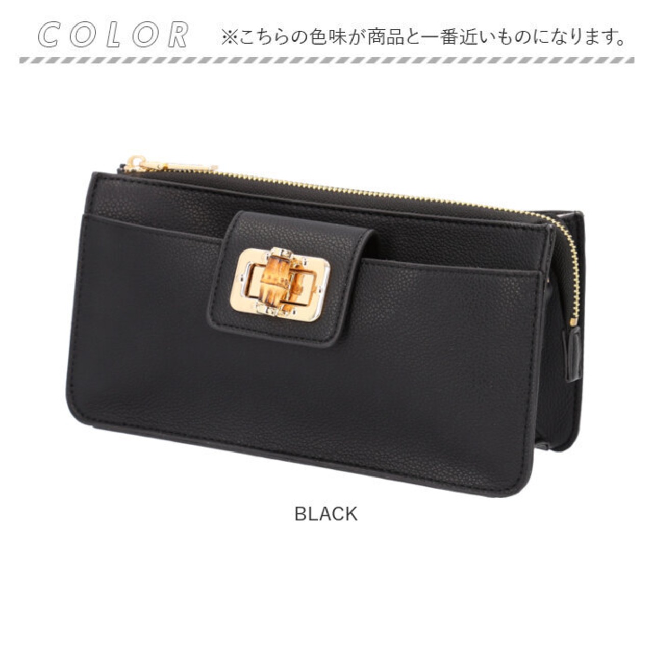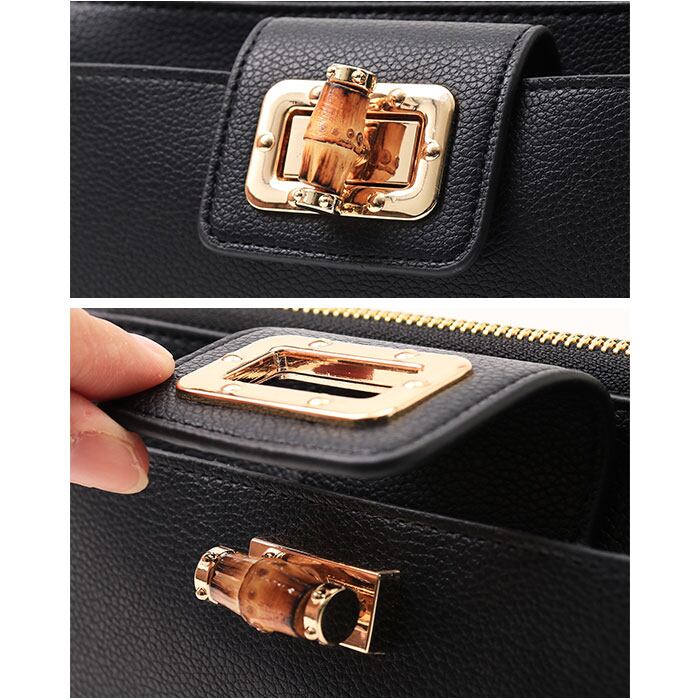・表面にシボ感のあるフェイクレザー素材を使用し、バンブーの留め具がアクセント。カジュアル過ぎず、キレイめコーデにも素敵にマッチ◎