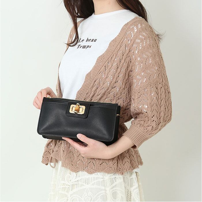 ・長いストラップを付けてポシェット、ストラップを取り外せば、クラッチバッグとして活躍。お好みやシーンに合わせてスタイルチェンジ☆