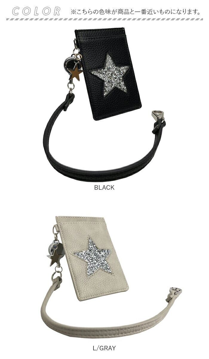 ・シボ感のあるフェイクレザー素材を使用。フロントに配置されたキラッと光るスターがアクセントに☆ストラップには、スターモチーフのチャーム付き。