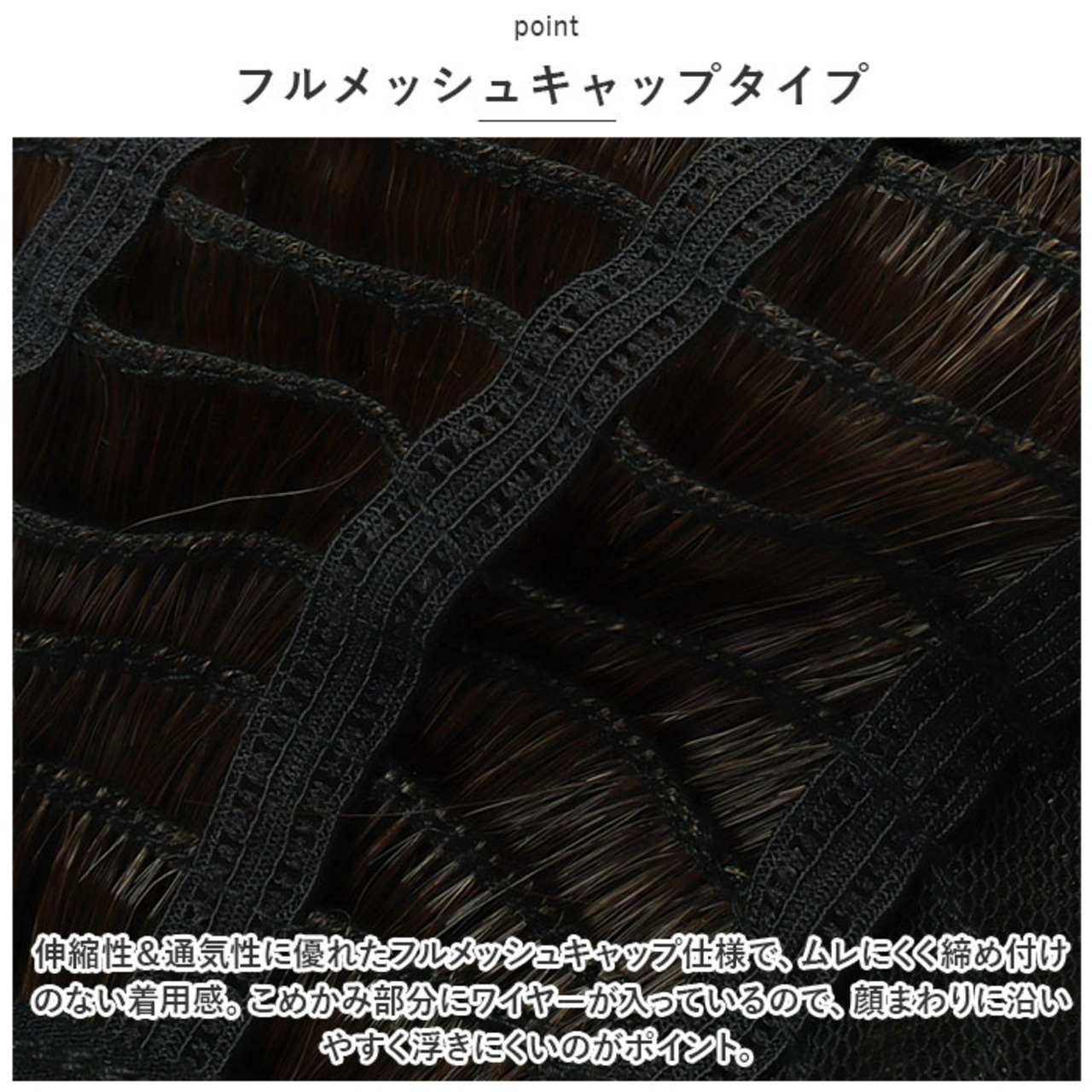 ・自毛をまとめるオールウィッグネットが1つ付属。ネットを使うことで、凹凸のないキレイなシルエットに。(※ネットはお手持ちのピンで固定してください。)