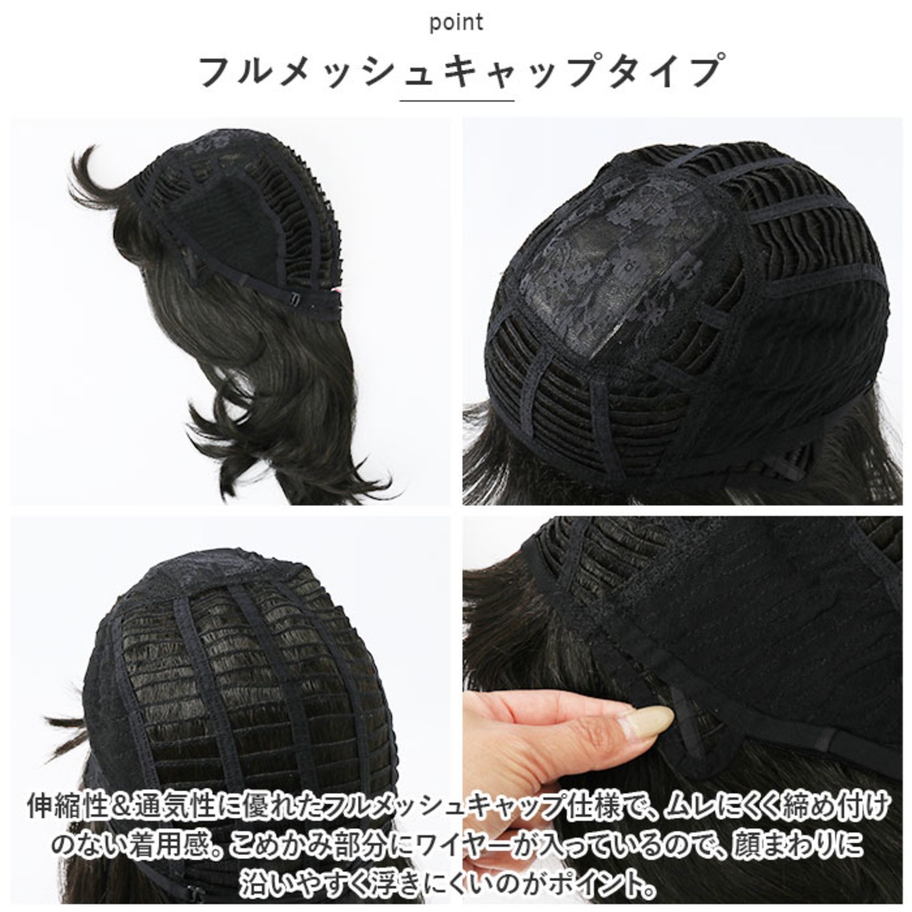 ・自毛をまとめるオールウィッグネットが1つ付属。ネットを使うことで、凹凸のないキレイなシルエットに。(※ネットはお手持ちのピンで固定してください。)