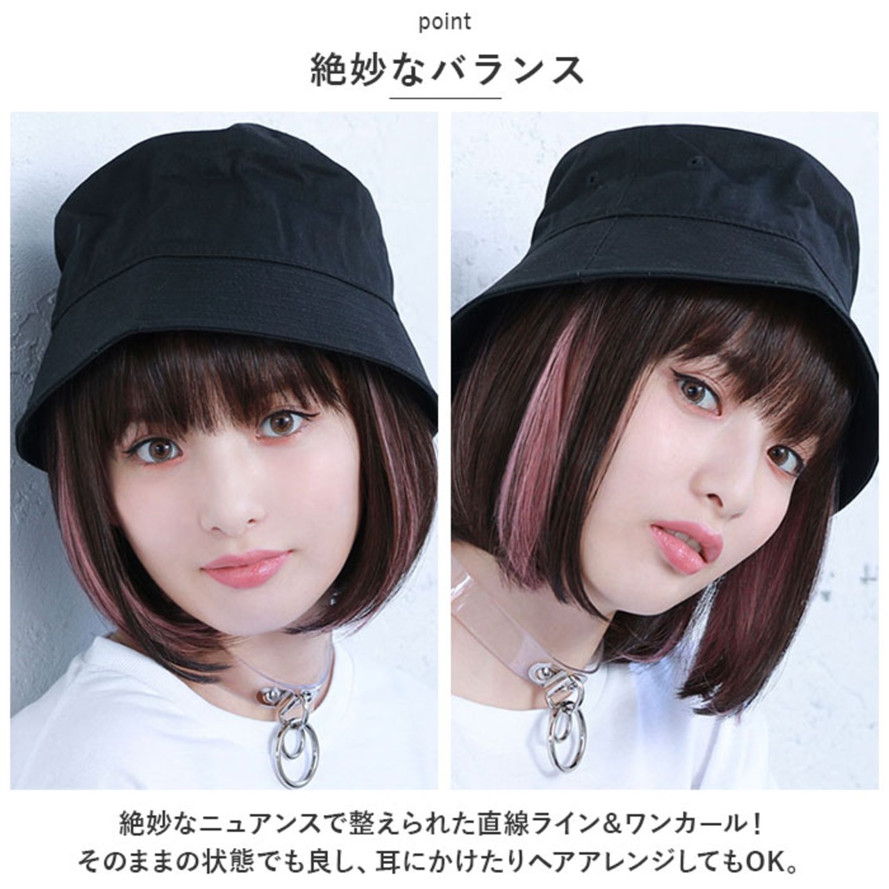 ・ウィッグ特有の厚みを抑えた無駄のないシルエット。程よいボリューム感で、クールな大人感を演出。