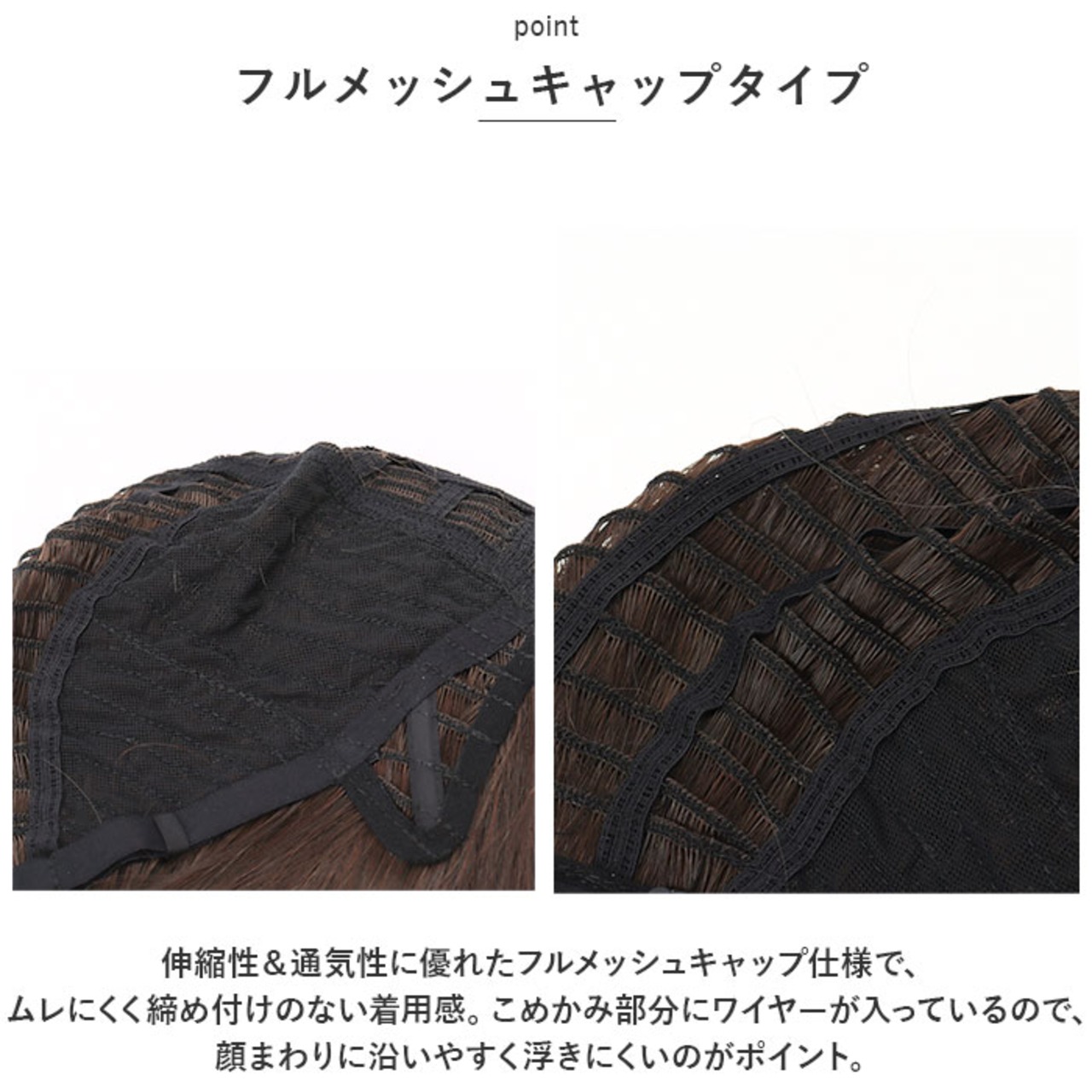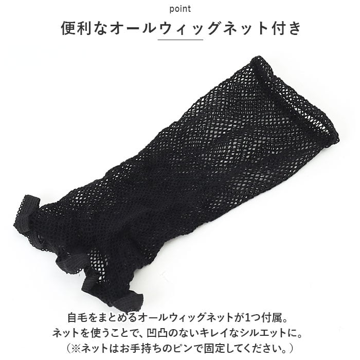 ・自毛をまとめるオールウィッグネットが1つ付属。ネットを使うことで、凹凸のないキレイなシルエットに。(※ネットはお手持ちのピンで固定してください。)
