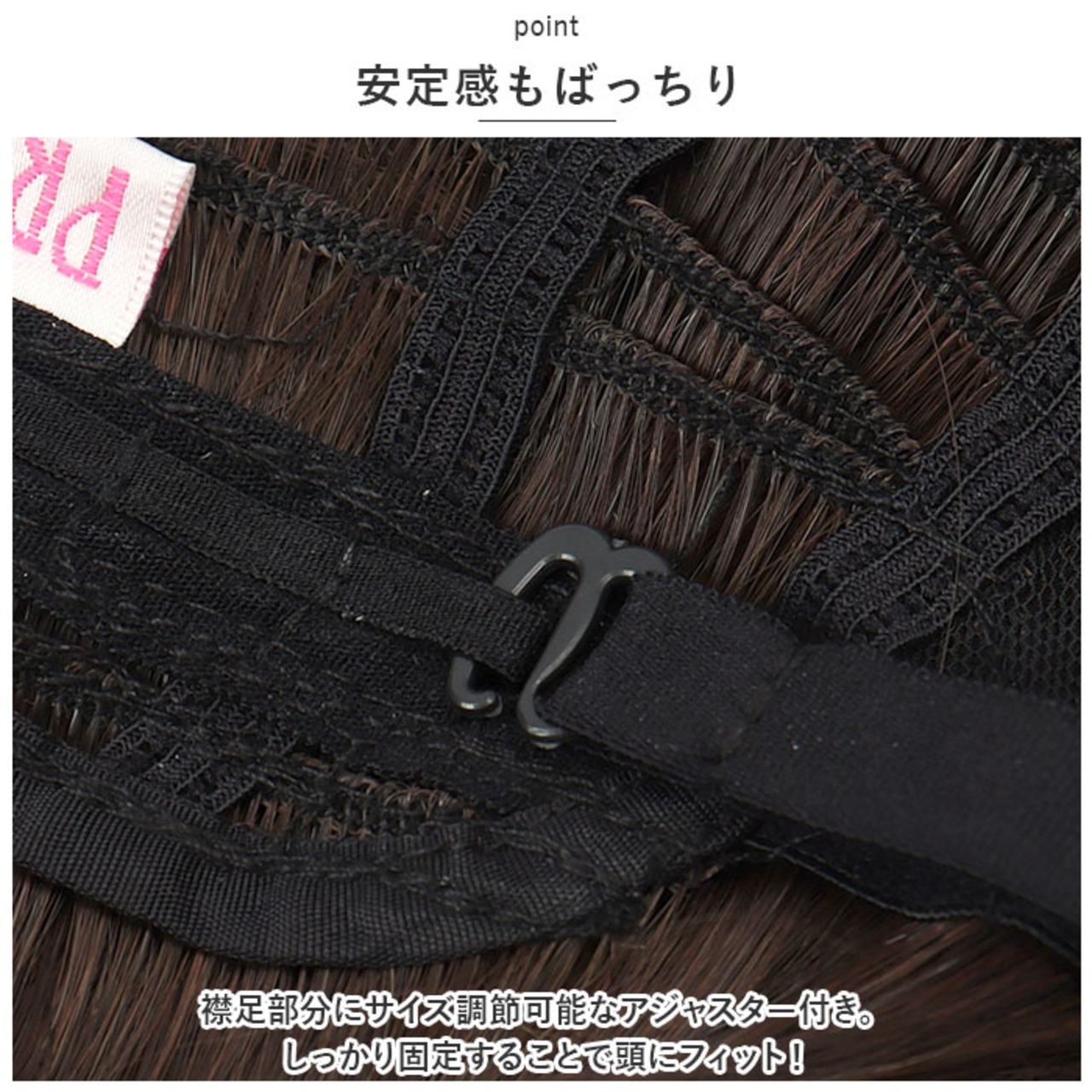 ・襟足部分にサイズ調節可能なアジャスター付き。しっかり固定することで頭にフィット!