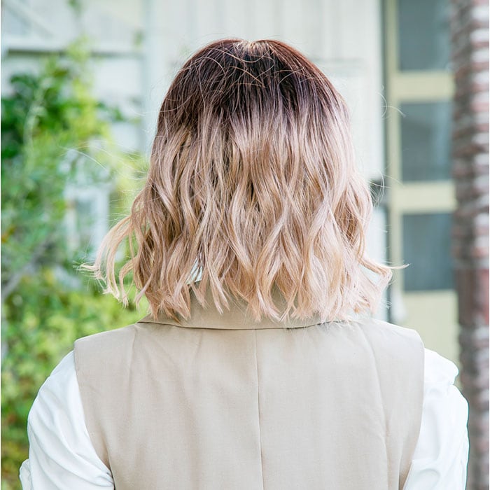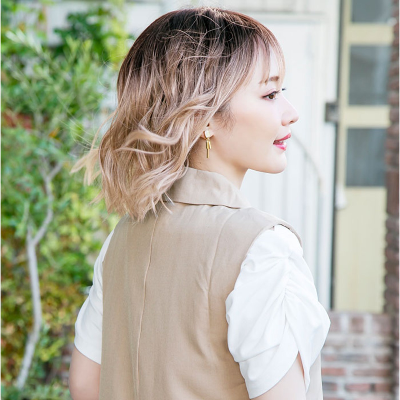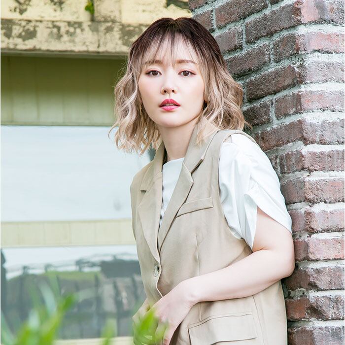 ・垢抜けが叶う、ラフでなだらかなウェーブボブスタイルが完成。ヘルシーな透明感をプラス。