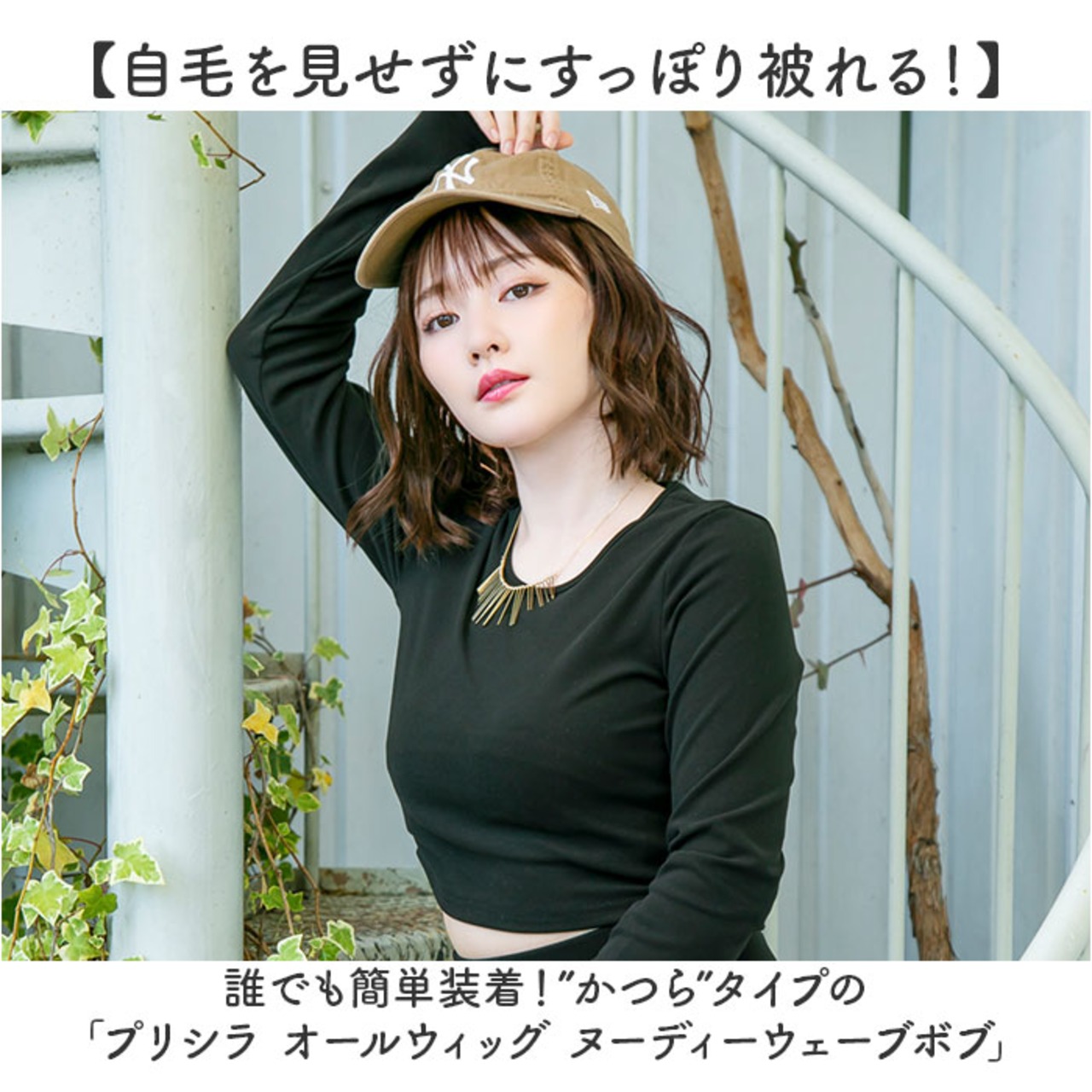 ・誰でも簡単装着!”かつら”タイプの「プリシラ オールウィッグ ヌーディーウェーブボブ」。