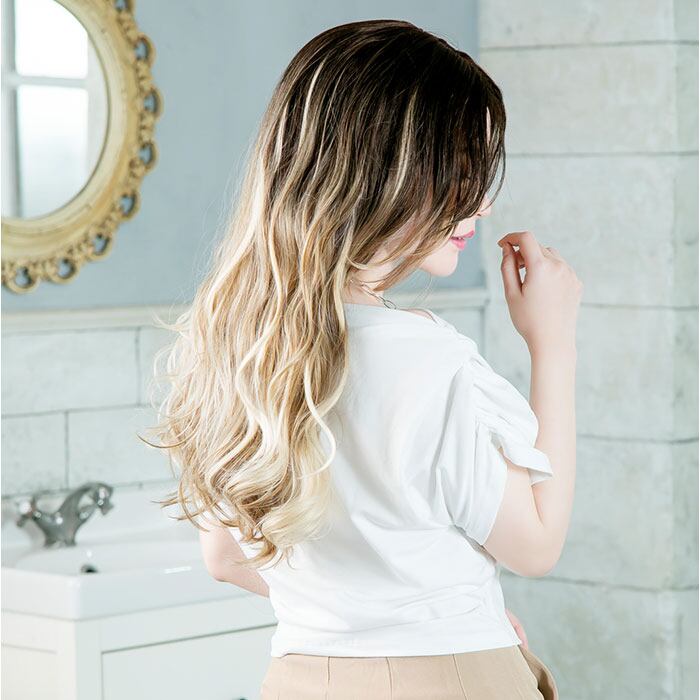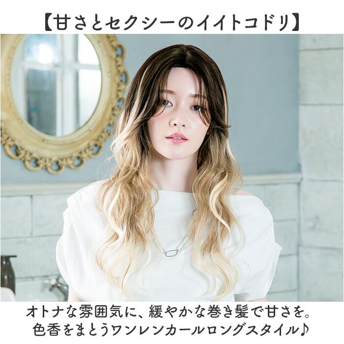 ・誰でも簡単装着!かつらタイプの「プリシラ オールウィッグ シマーリッチカールロング」。