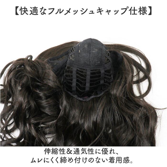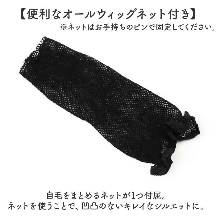 ・自毛をまとめるネットが1つ付属。ネットを使うことで、凹凸のないキレイなシルエットに。