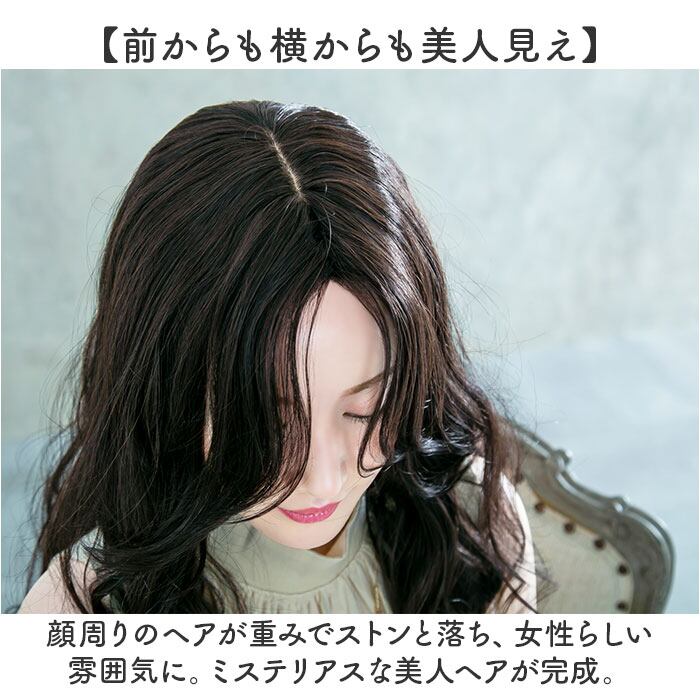 ・顔周りのヘアが重みでストンと落ち、女性らしい雰囲気に。ミステリアスな美人ヘアが完成。