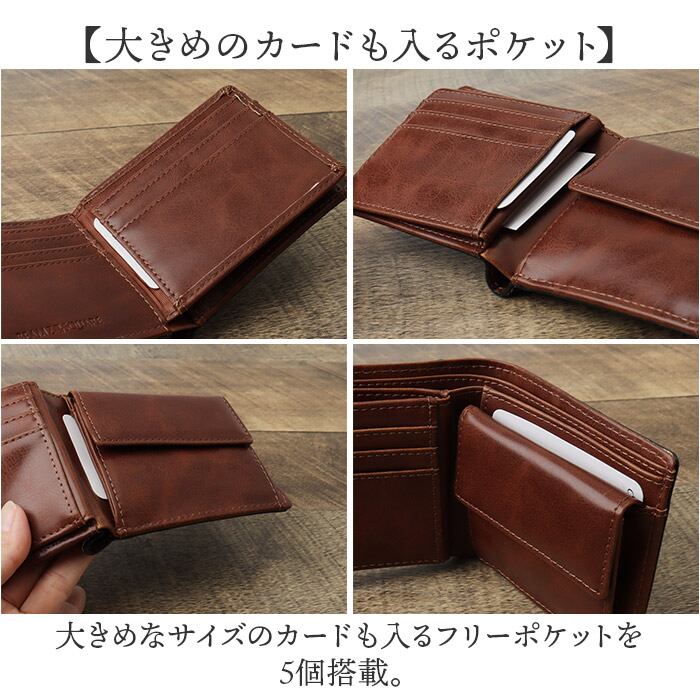 ・大きめなサイズのカードも入るフリーポケットを5個搭載。