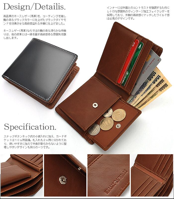 財布 メンズ 二つ折り 本革 馬 通販 馬革 二つ折 二つ折り財布 お財布 小銭入れ ウォレット ミニウォレット さいふ 小さい 小さめ BEAMZSQUARE ビームズスクエア 薄い 薄型 コンパクト BZSQ-1732 おしゃれ かっこいい メンズ財布