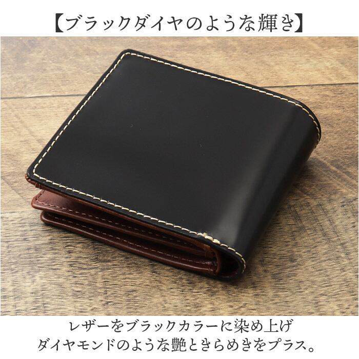 BEAMZSQUARE ブラックダイヤ馬革二つ折り財布