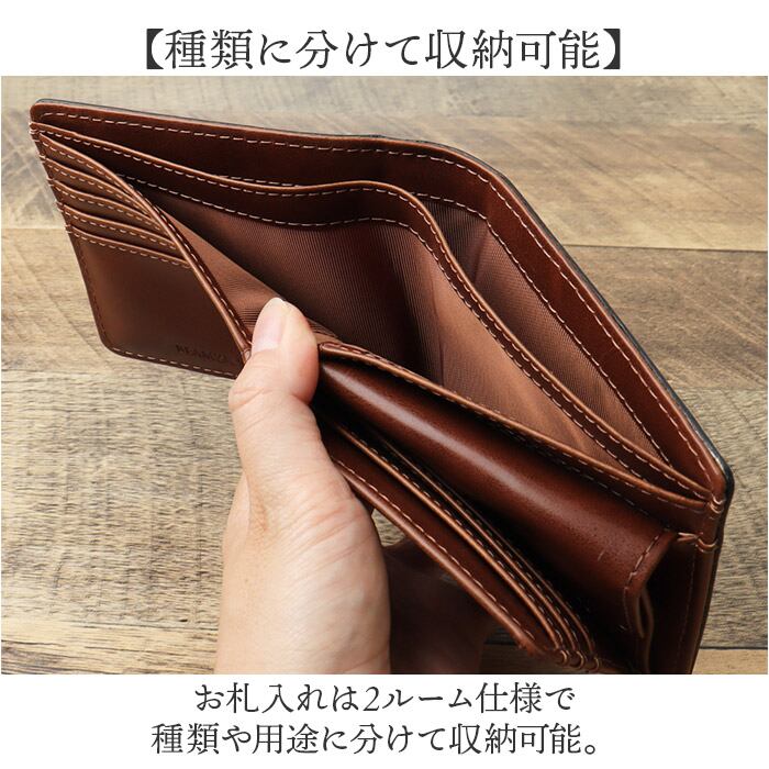 ・お札入れは2ルーム仕様で種類や用途に分けて収納可能。