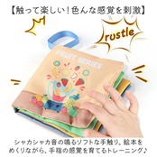 ・シャカシャカ音の鳴るソフトな手触り。絵本をめくりながら、手指の感覚を育てるトレーニング♪
