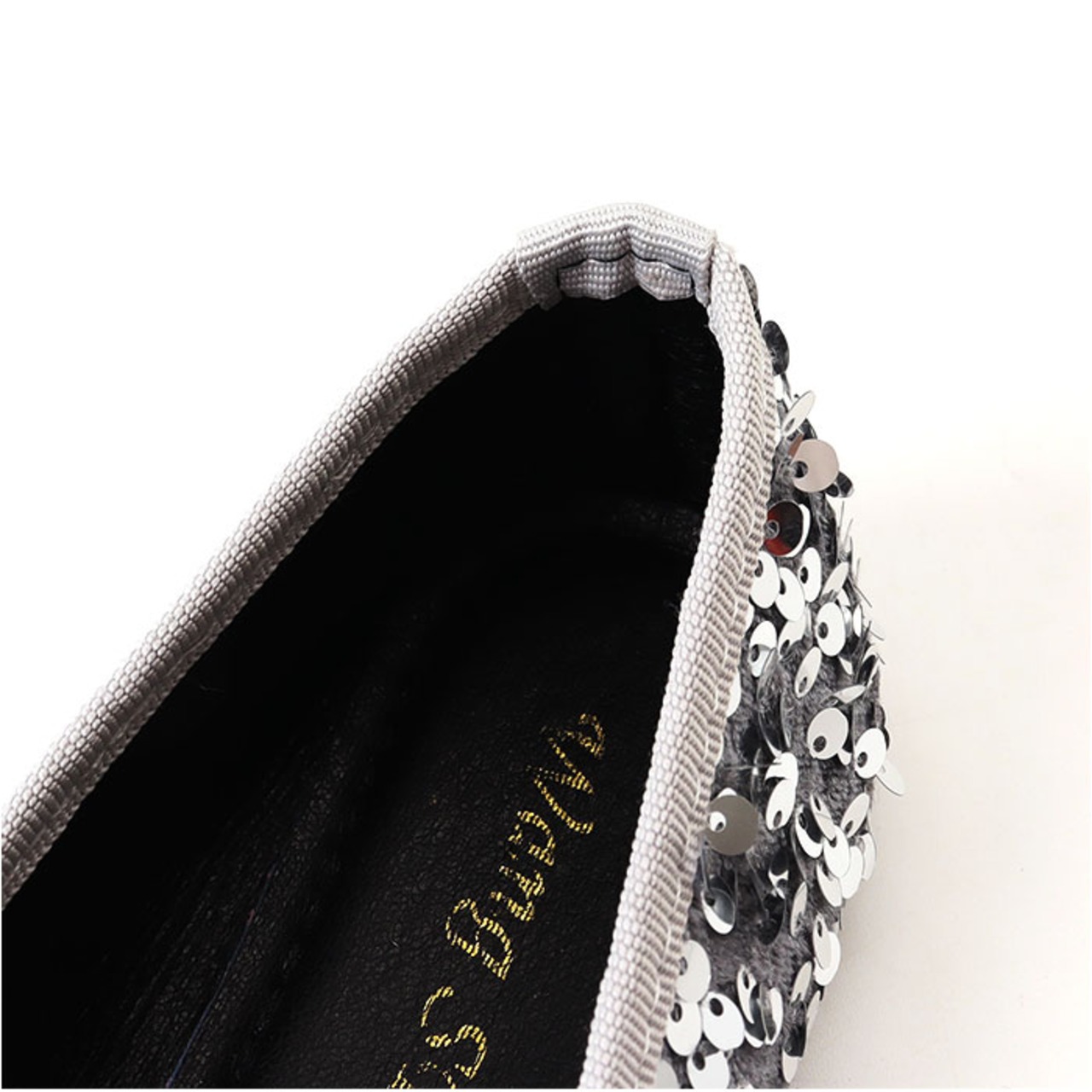 ・光が当たるとキラキラ輝くスパンコールを散りばめた、トレンド感のある1足。