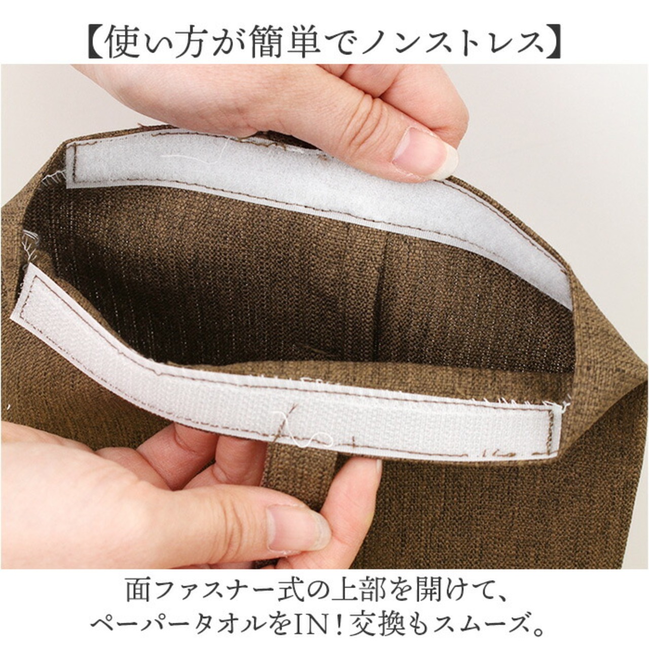 ・こなれた雰囲気を演出する、ファブリック素材。お部屋に映えるペーパータオルケース♪