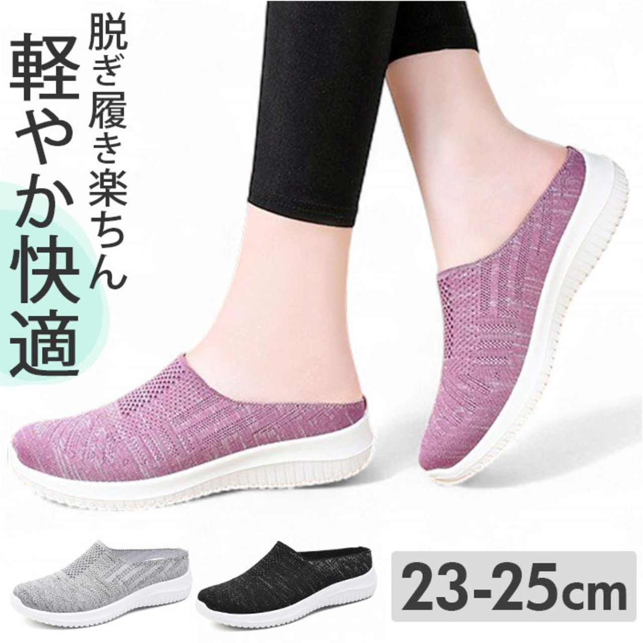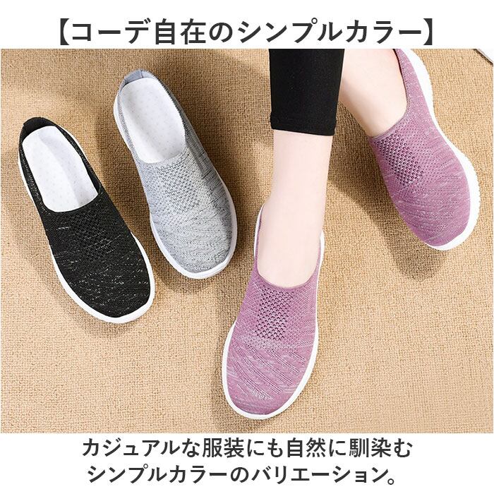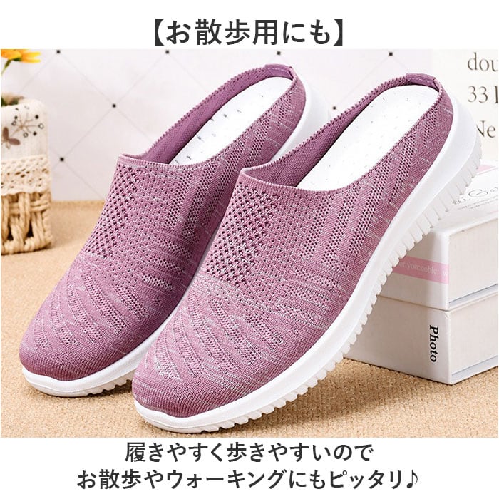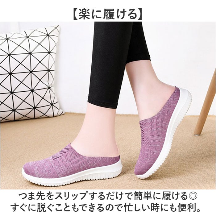 ・つま先をスリップするだけで簡単に履ける◎すぐに脱ぐこともできるので忙しい時にも便利。
