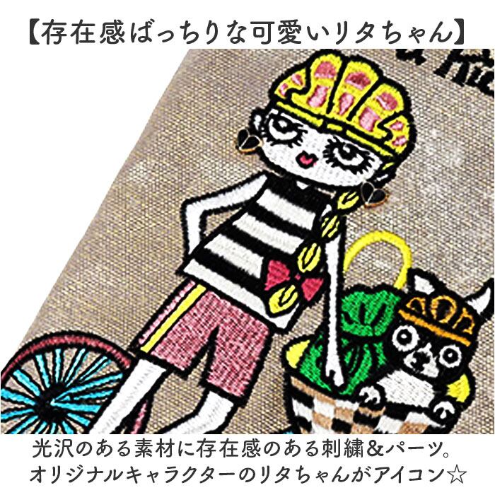 ・光沢のある素材に存在感のある刺繍&パーツ。オリジナルキャラクターのリタちゃんがアイコン☆