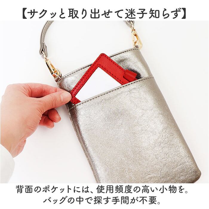 ・背面のポケットには、使用頻度の高い小物を。バッグの中で探す手間が不要。