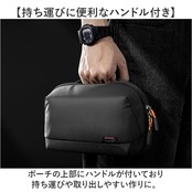 ・ポーチの上部にハンドルが付いており持ち運びや取り出しやすい作りに。