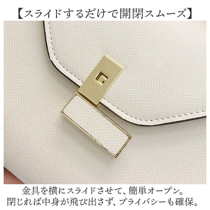 ・金具を横にスライドさせて、簡単オープン。閉じれば中身が飛び出さず、プライバシーも確保。