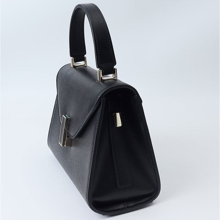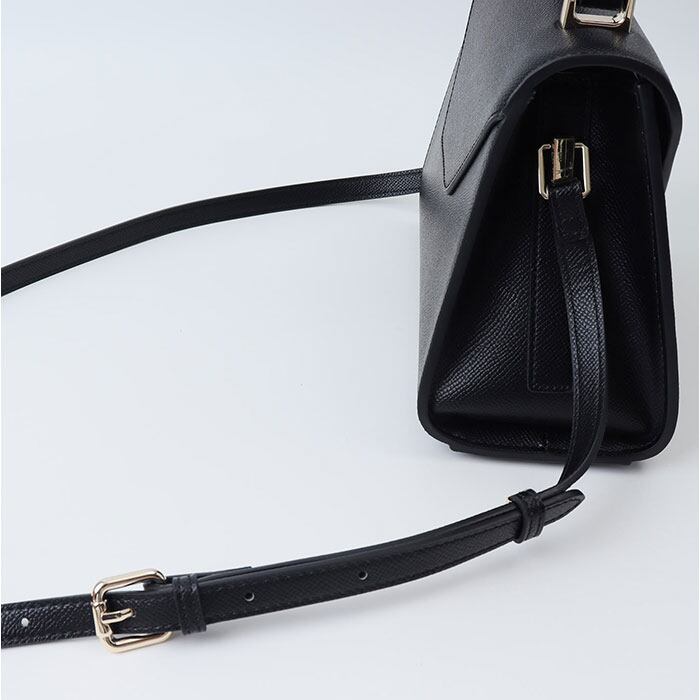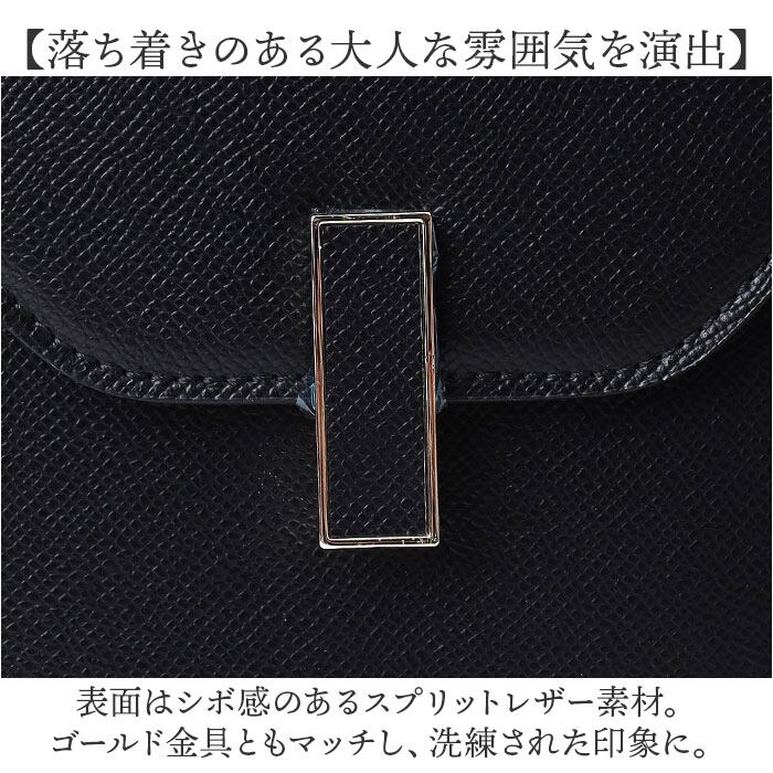 ・表面はシボ感のあるスプリットレザー素材。ゴールド金具ともマッチし、洗練された印象に。