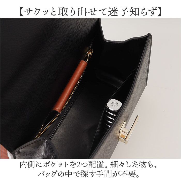 ・内側にポケットを2つ配置。細々した物も、バッグの中で探す手間が不要。