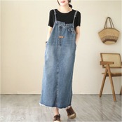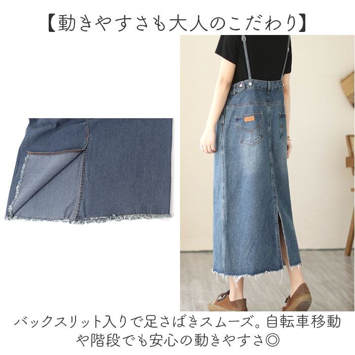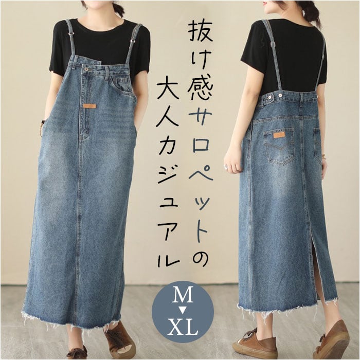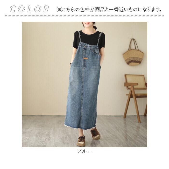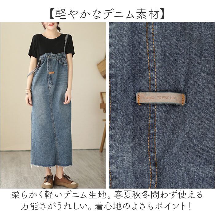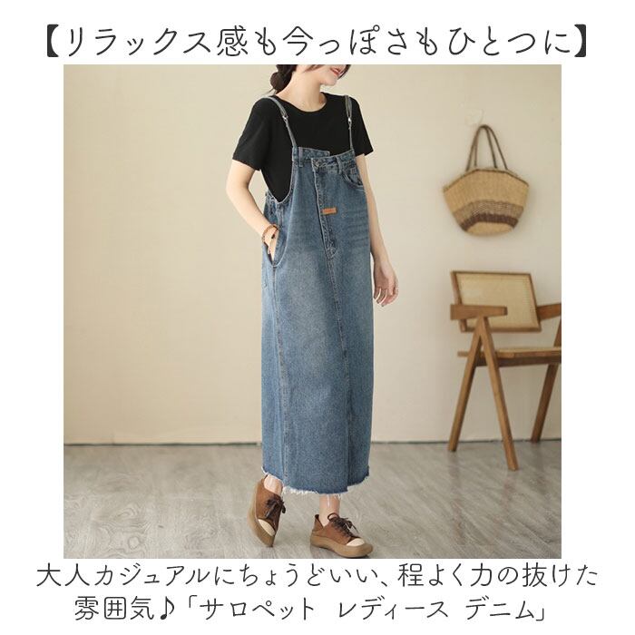 サロペット レディース デニム ジャンパースカート ロング 通販 スカート デニムサロペット オーバーオール オールインワン デニムワンピース サロペットワンピース ロング丈 カジュアル ポケット ゆったり 体型カバー オールシーズン 女性 大人