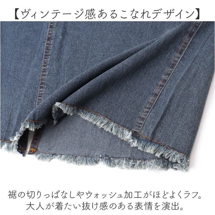 ・裾の切りっぱなしやウォッシュ加工がほどよくラフ。大人が着たい抜け感のある表情を演出。